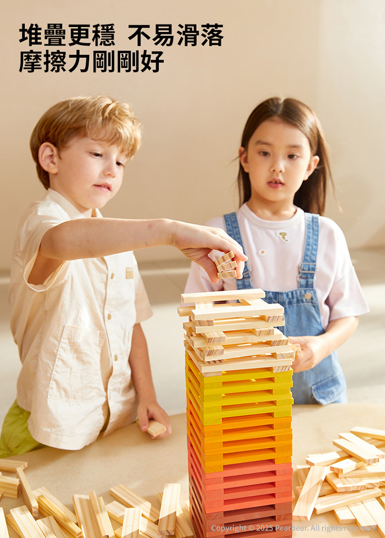 推疊不滑落摩擦力大,光滑、不傷手讓孩子安心玩。
