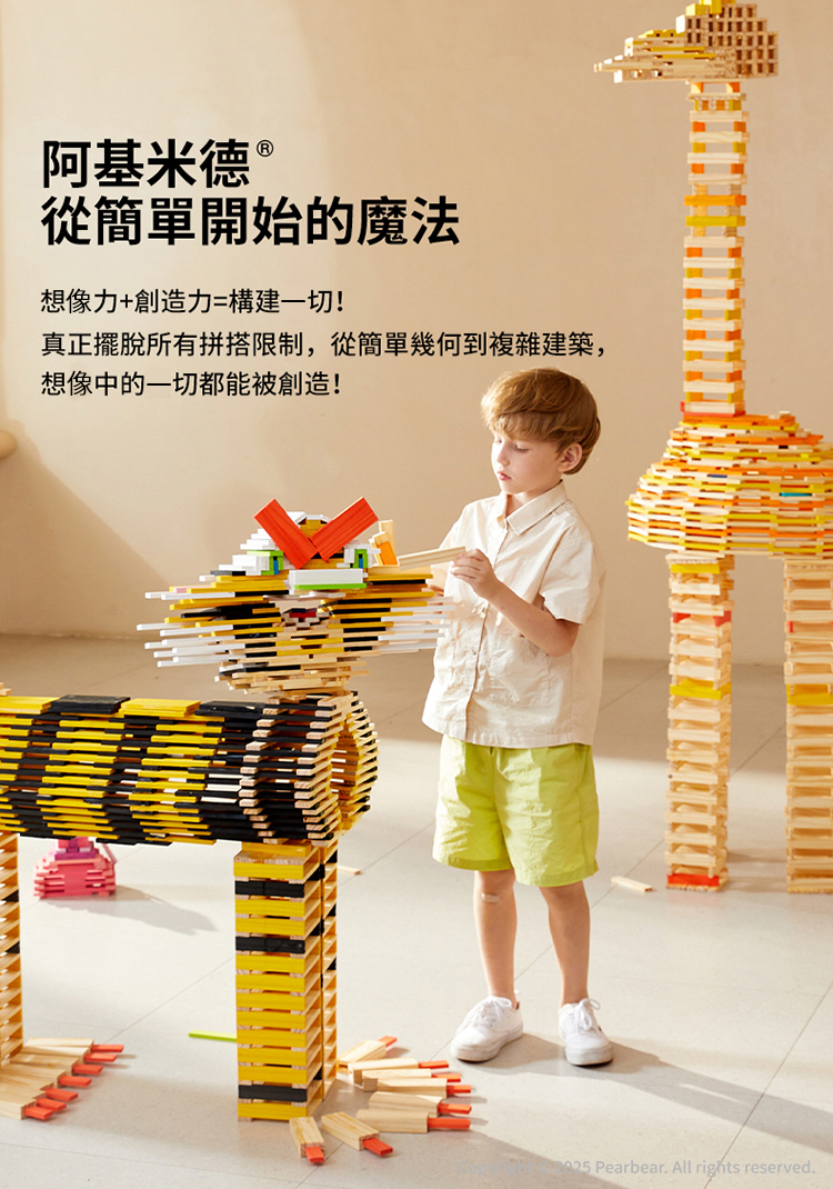 他研究槓桿、幾何與結構原理,而這些原理其實也存在於孩子的積木世界裡。